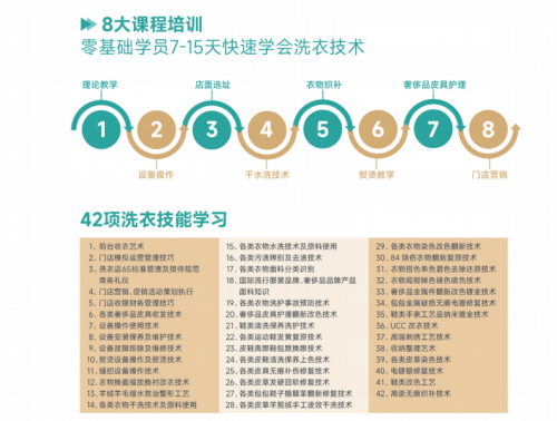 系统技术培训:UCC设有大型培训中心,提供7–15天的免费技术教学,内容涵盖衣物识别、去渍、熨烫、设备操作等42项技能,零基础也能轻松学会。